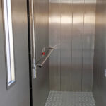 - Possui sistema de resgate, onde no caso de falha de energia elétrica o usuário aperta o botão e a plataforma desce.